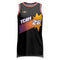 Design your own custom SUNS-Inspired mid-thigh basketball shorts for your team or club using our templates. You can change the colours, add your Logo, Team Name, Player Names and Numbers and other images using our product designer. Start by clicking "CUSTOMISE IT" which will load a new screen in the designer tool. Minimums are low at only 5 pieces.